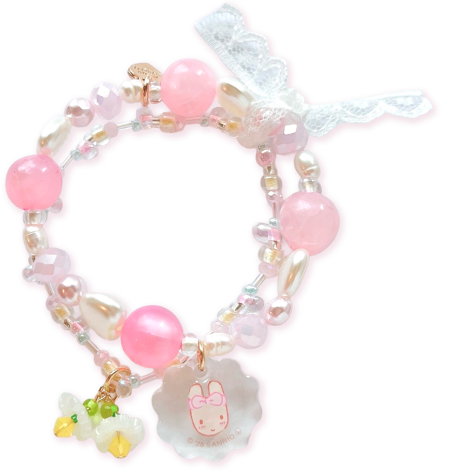 MICHU COQUETTE × FANCY SANRIO CHARACTERS MARRONCREAM【Epoxy Charm Bracelet】(B) しずくをたっぷり含んだような、 みずみずしいエポキシ樹脂加工を施したアクリルチャームのブレスレットです。 ウェーブカットのラインが可愛らしく、手元に上品なアクセントを添えます。 キャラクターの世界観に合わせ、 ビーズで表現した星のステッキやお花畑などのモチーフを組み合わせています。 細部のデザインまでぜひお楽しみください。 【サイズ】 ・手首まわり:約16cm ・チャーム:約2cm ┈ ┈ ┈ ┈ ┈ ┈ ┈ ┈ 本商品は、株式会社サンリオとの正式なライセンス契約に基づき、MICHU COQUETTEが企画・制作したアイテムです。 © 2025 SANRIO CO., LTD. APPROVAL NO. L662484 無断複製・転売・商用利用は固くお断りいたします。