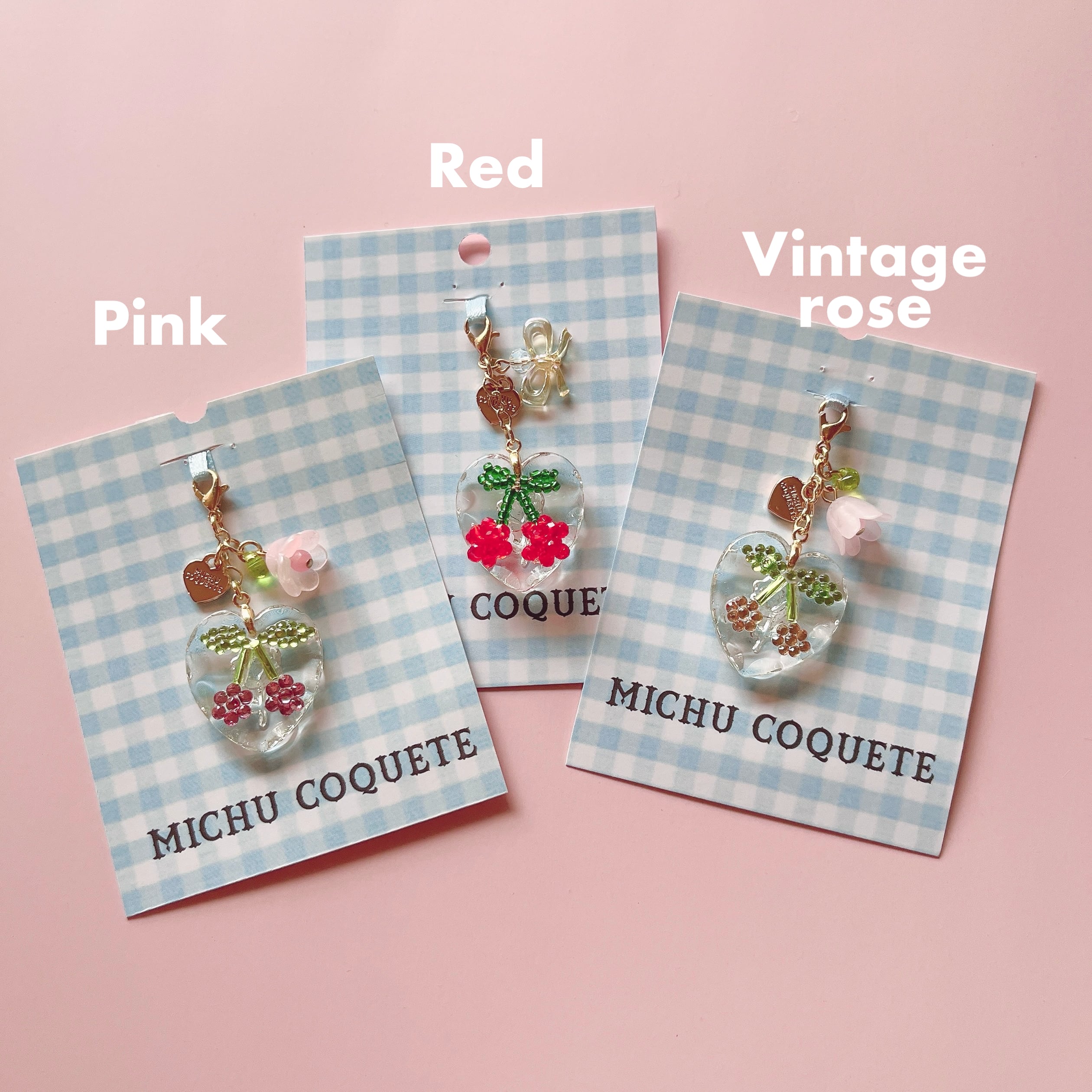 Cherry Heart Charm (Pink、Red、Vintage rose)