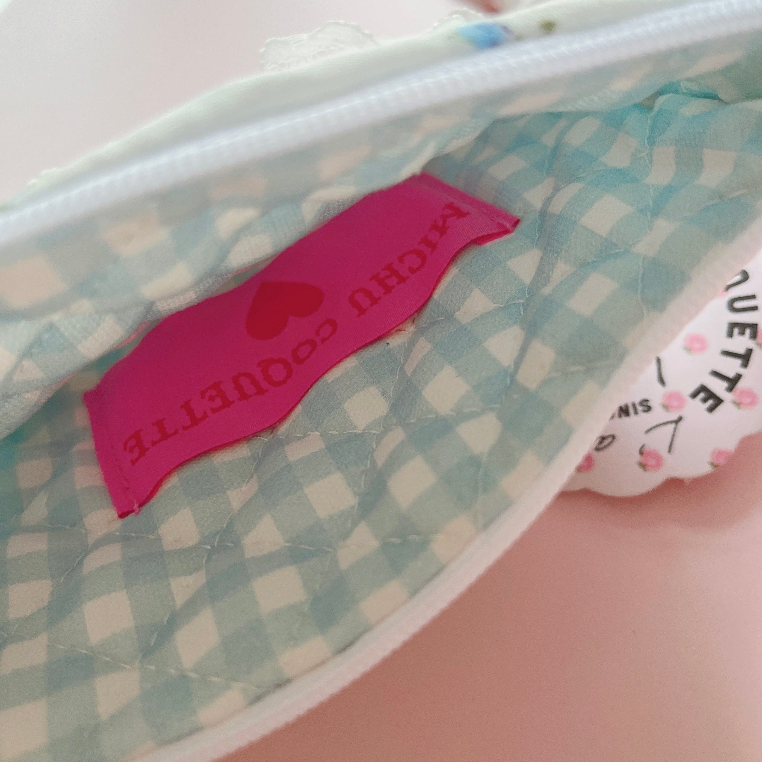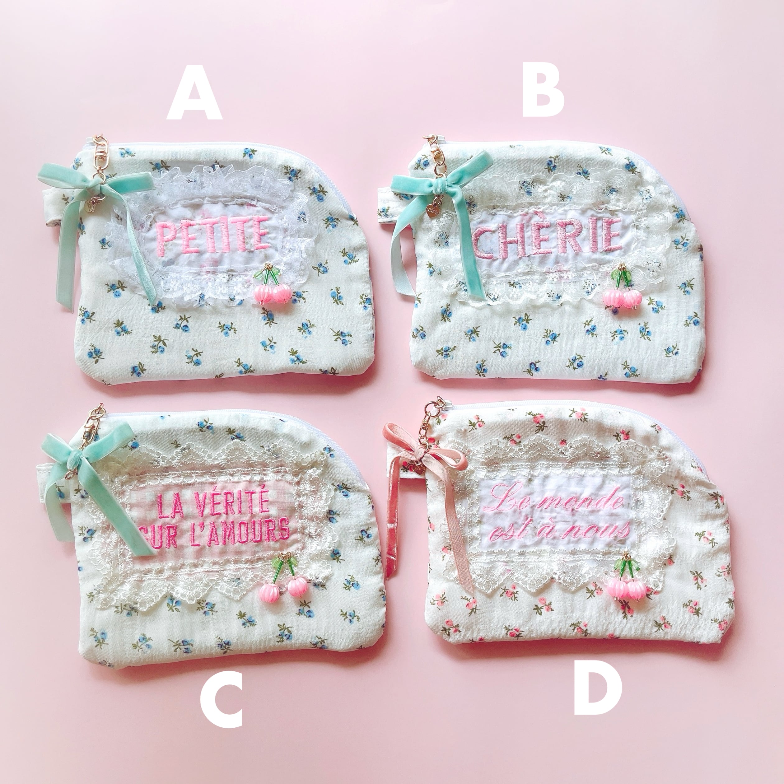やわらかなコットンガーゼに小花柄をあしらったフラットポーチです。