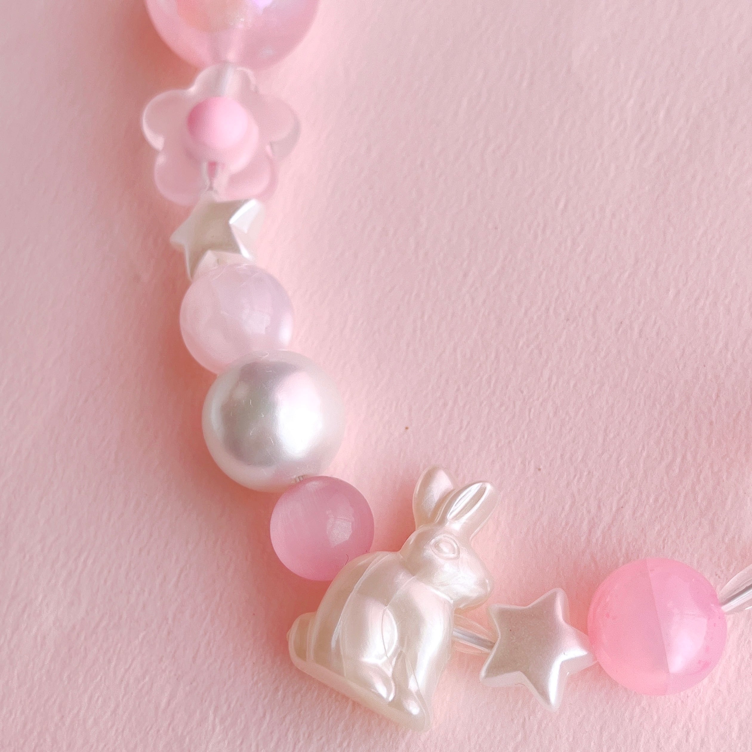 やさしい光沢のホワイトうさぎチャームが、可憐なアクセントになっています。