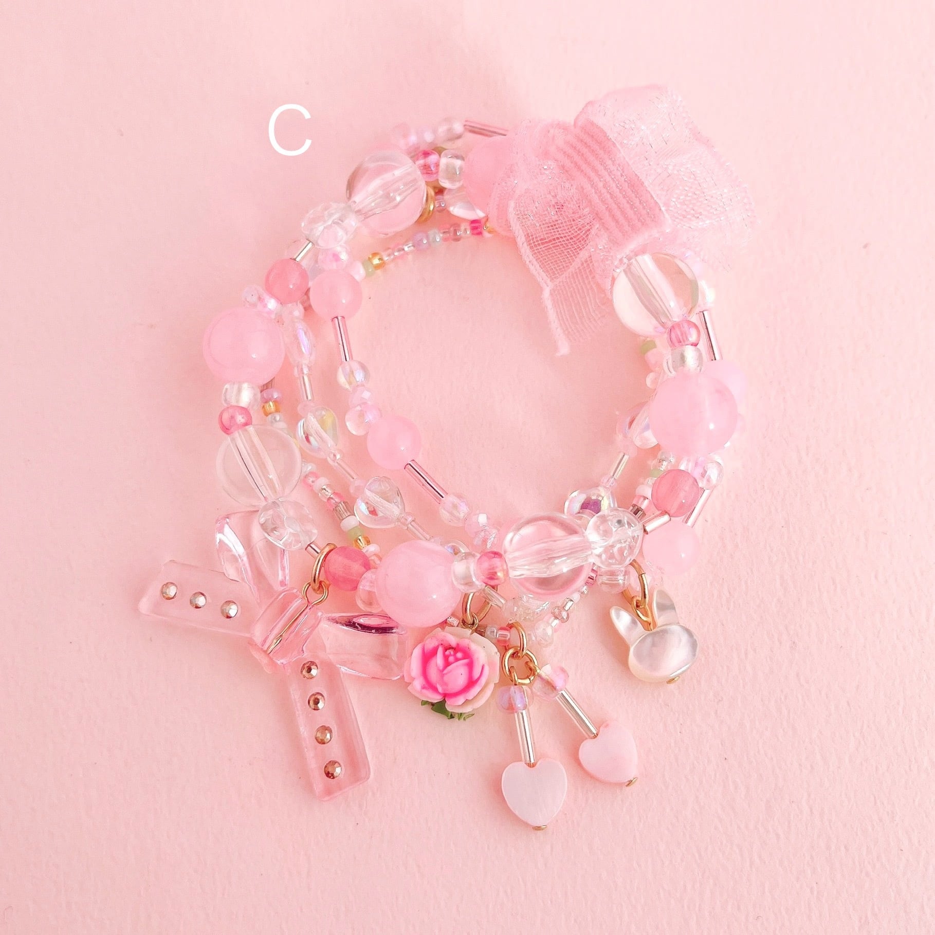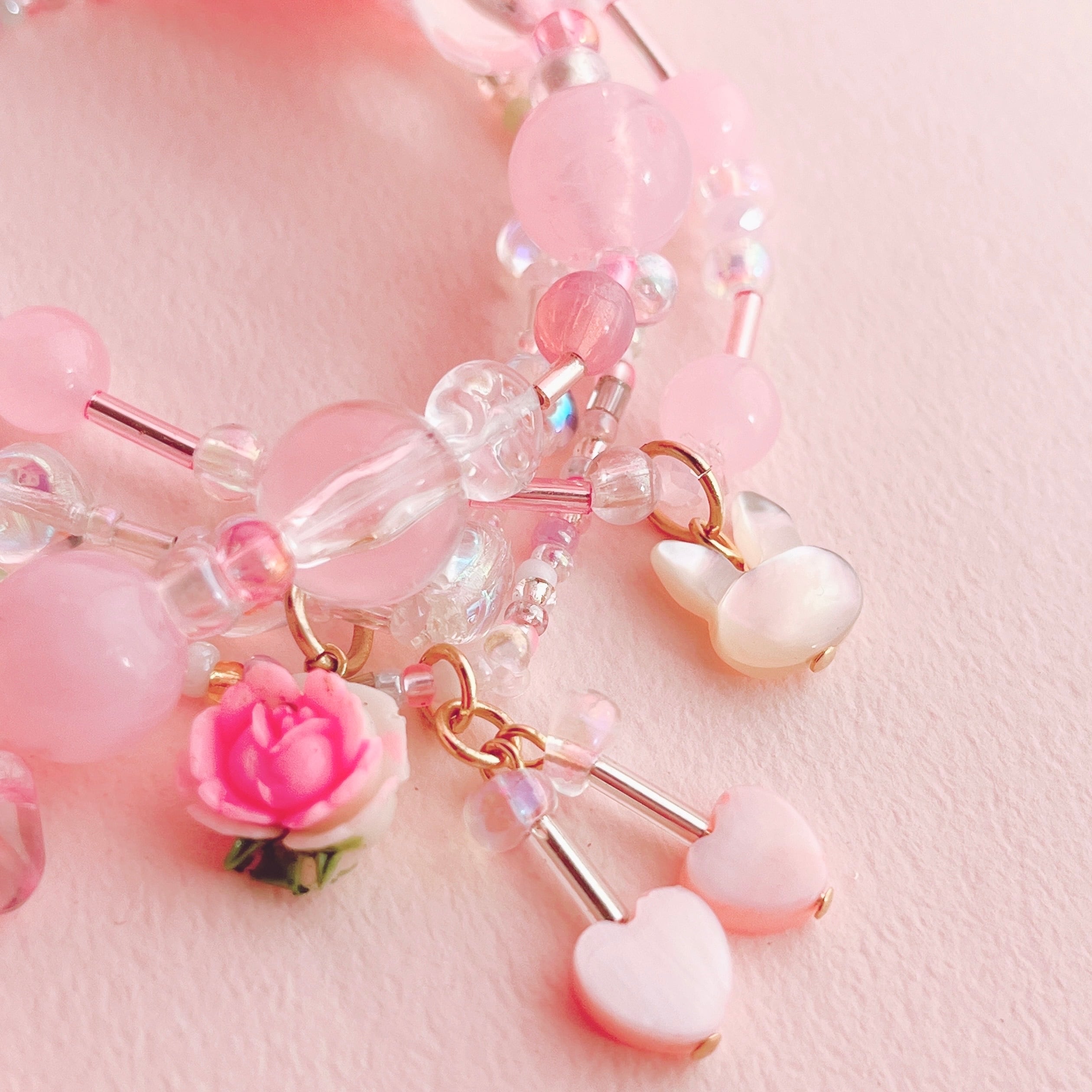 華やかでロマンティックな重ね付けブレスレットです。