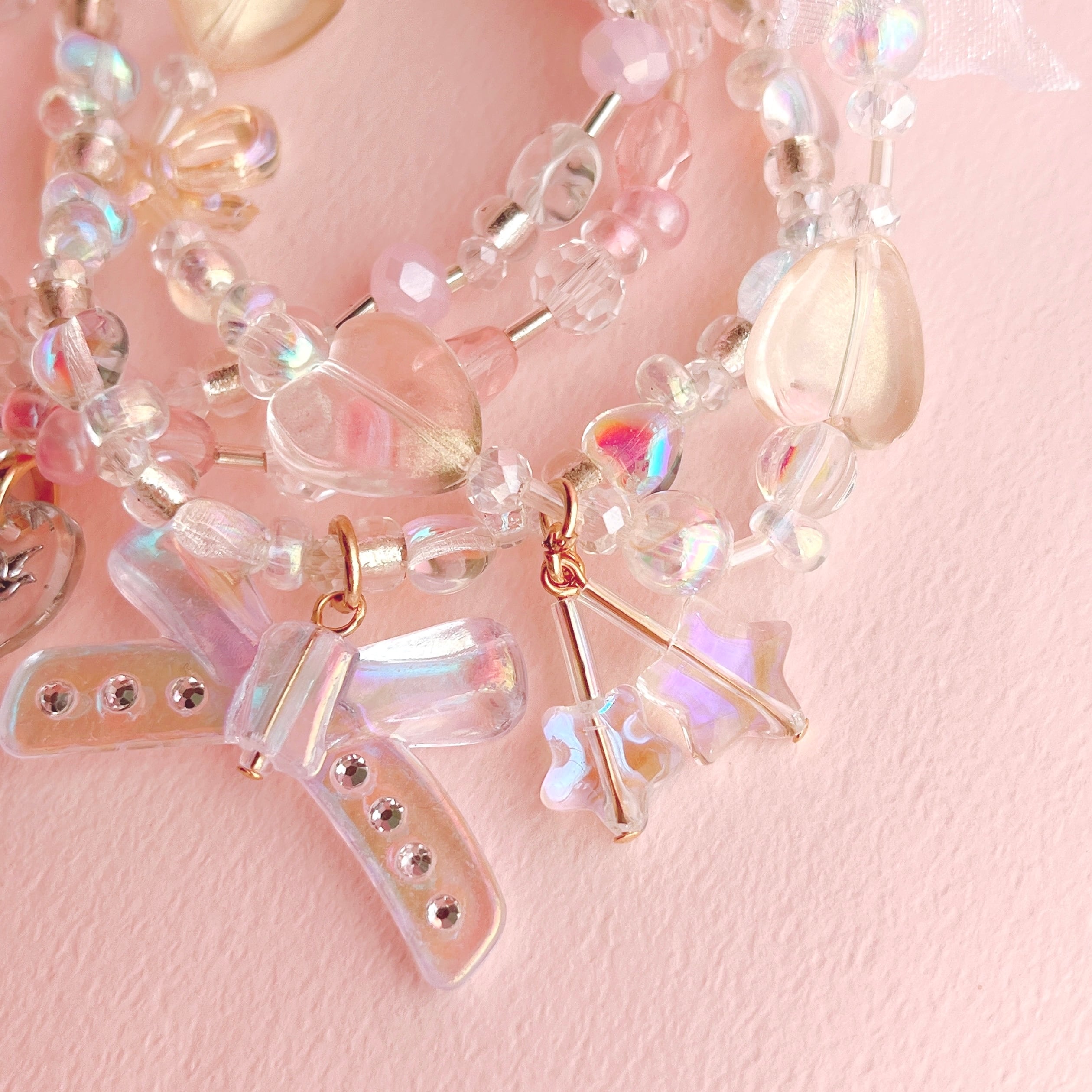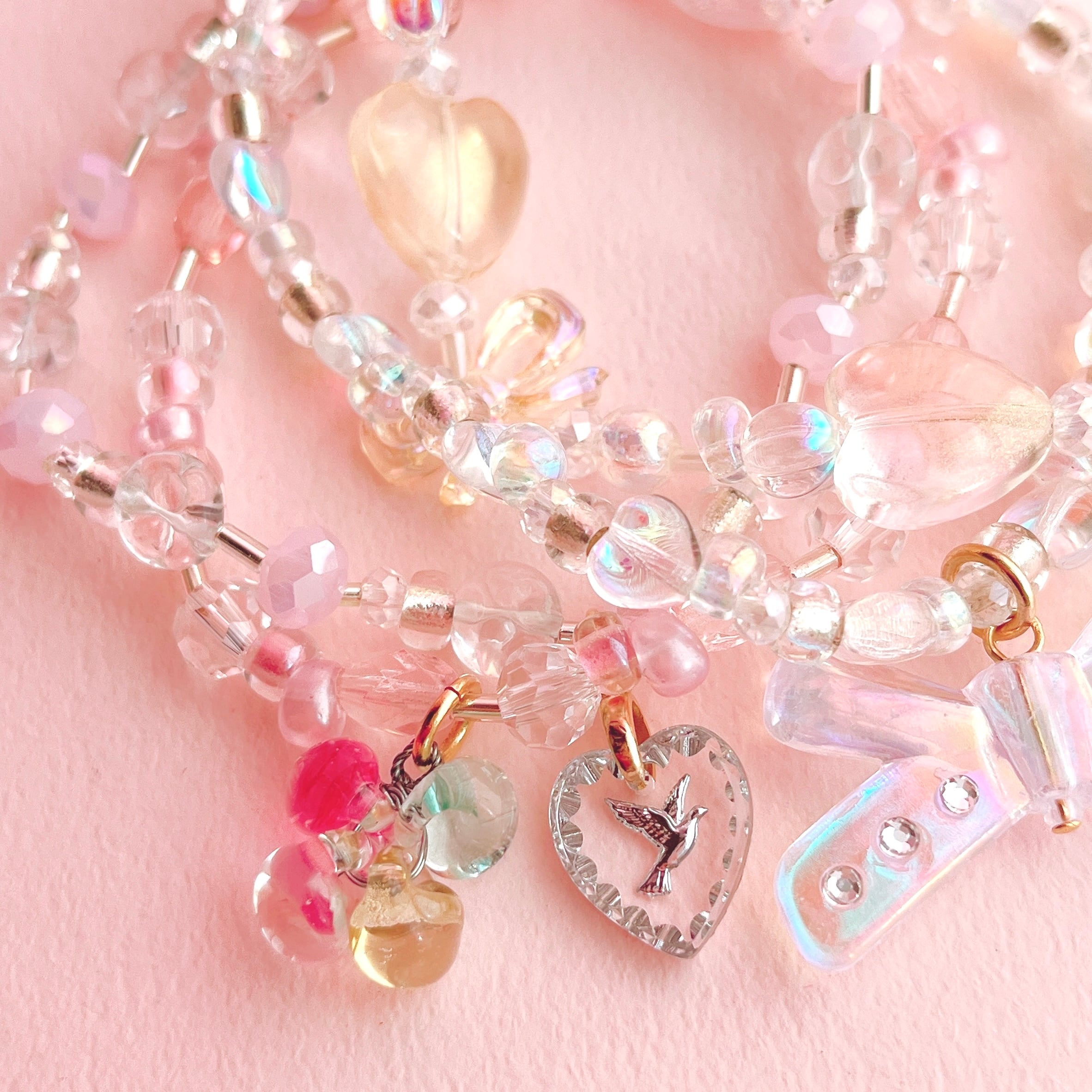 様々な素材やカラーのビーズとフラワーモチーフなどを組み合わせた、