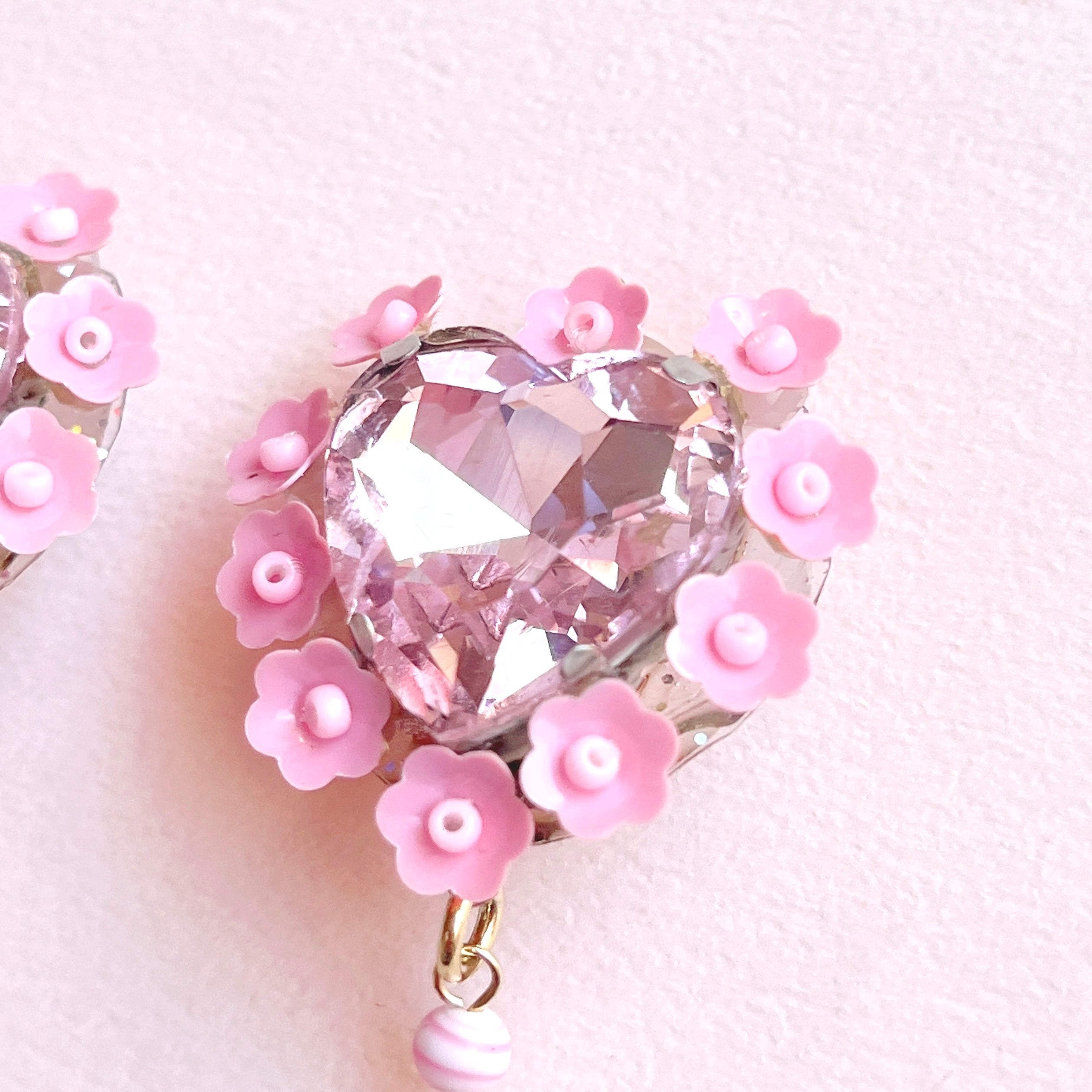 ハート型のピンクビジューを中心に、