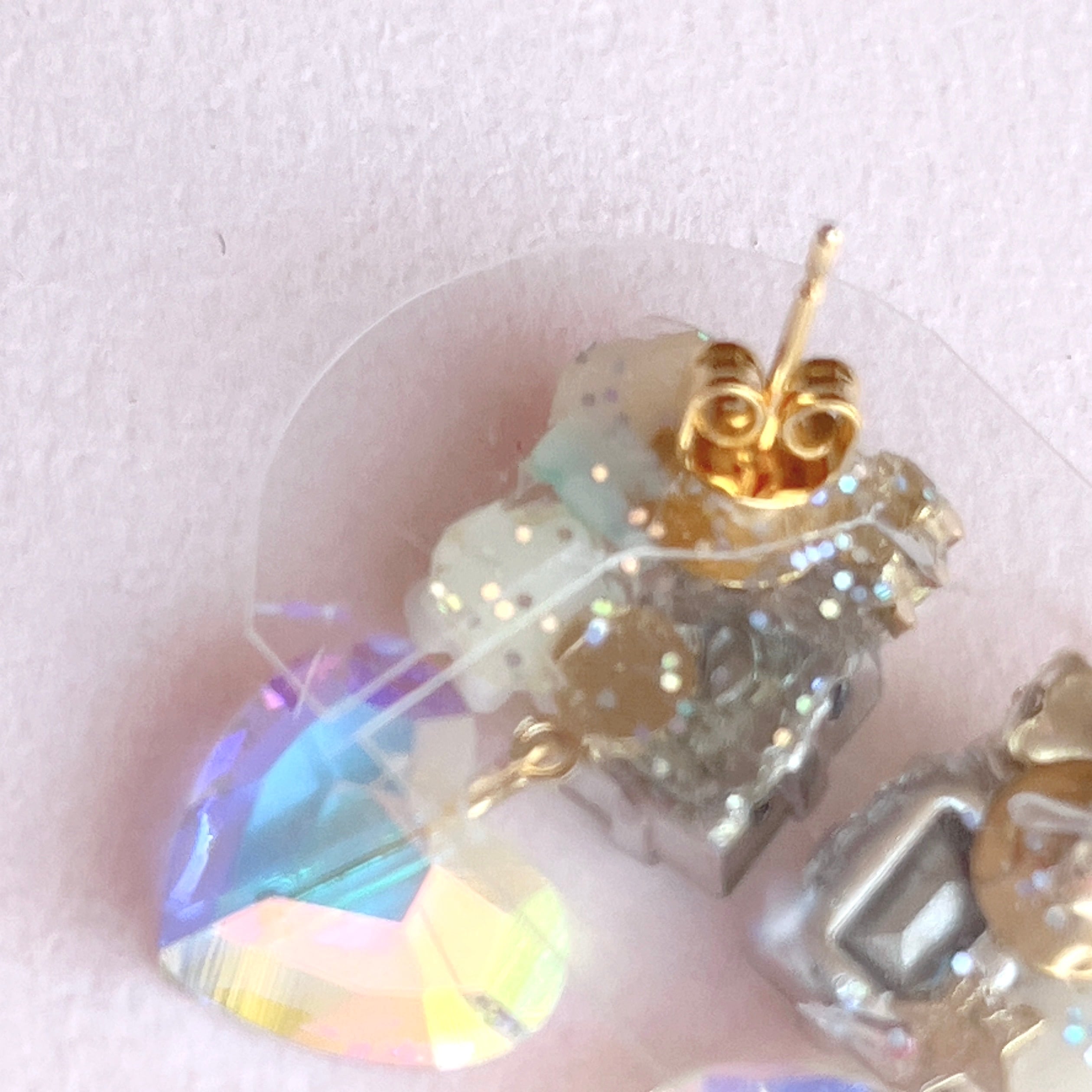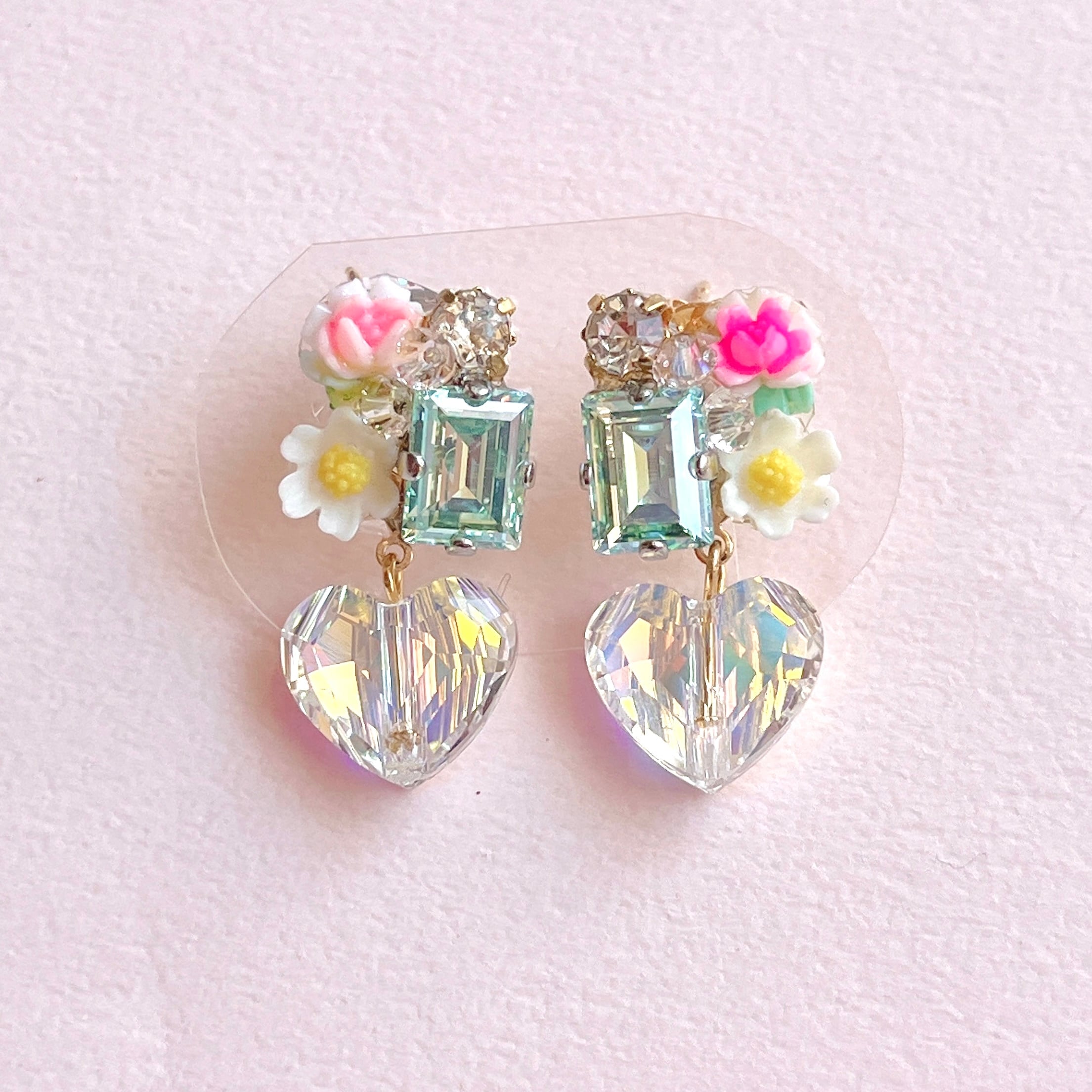 【Special Price・撮影使用品】Vintage Rose & Daisy Crystal Heart ピアス