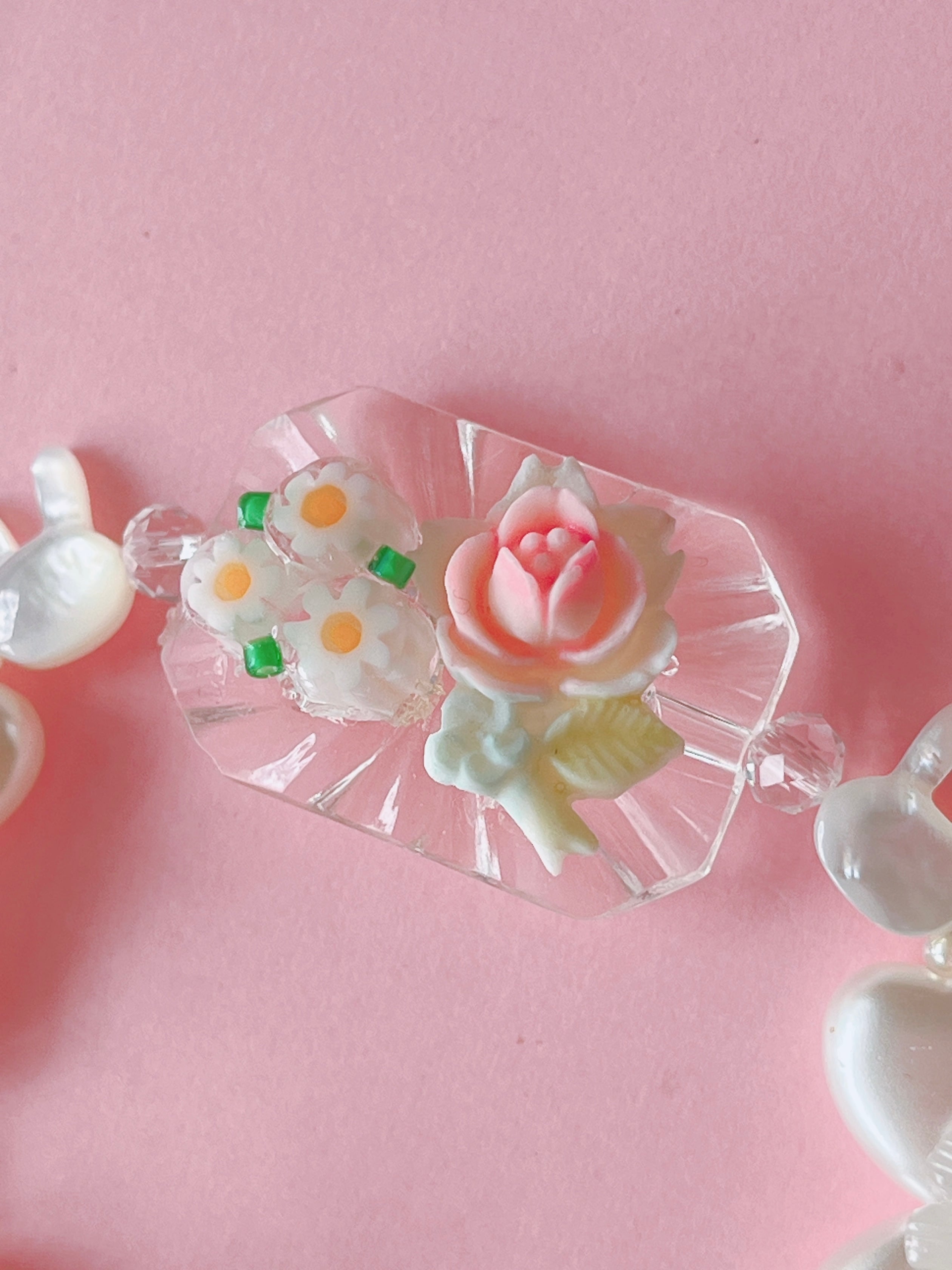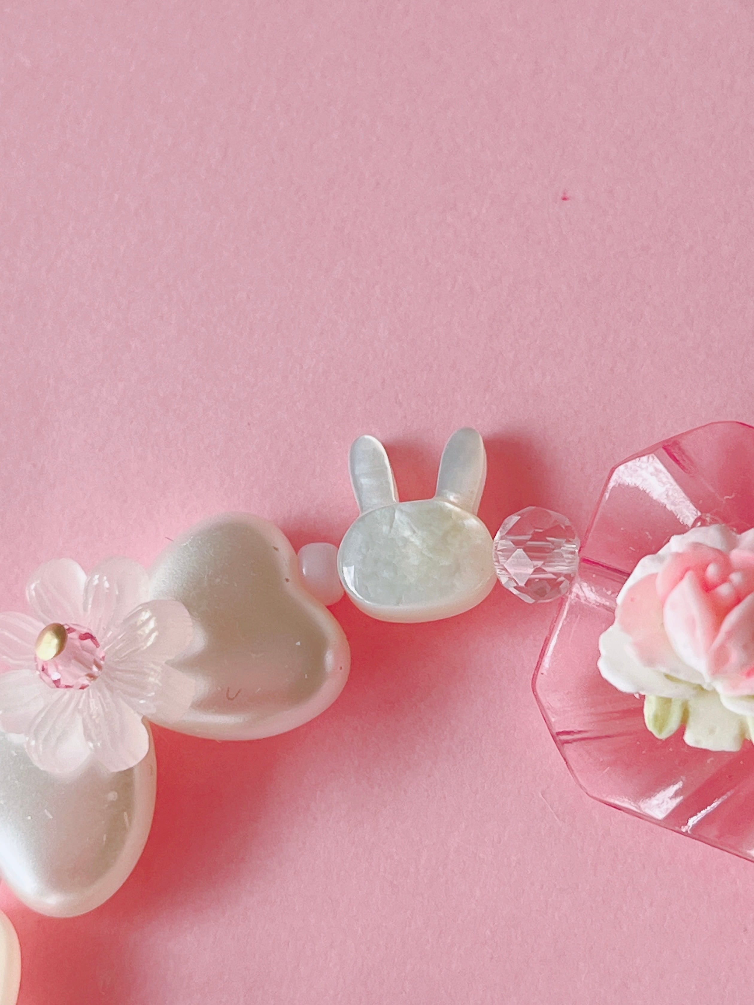 シェル素材の小さなうさぎと可憐なお花が連なった、
