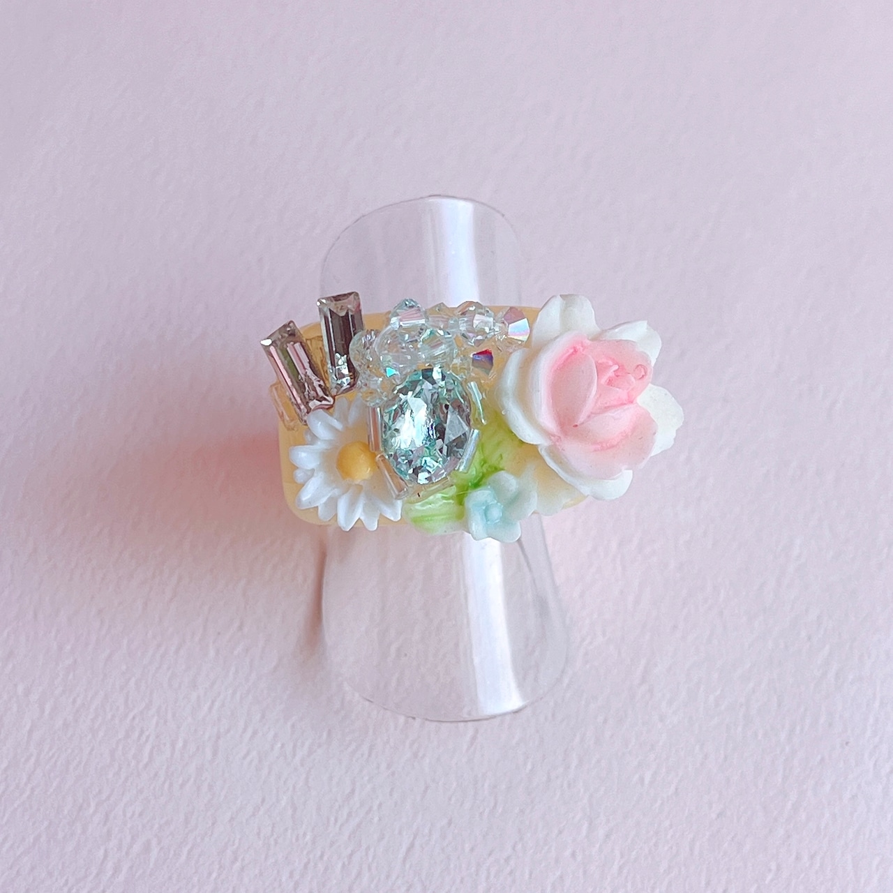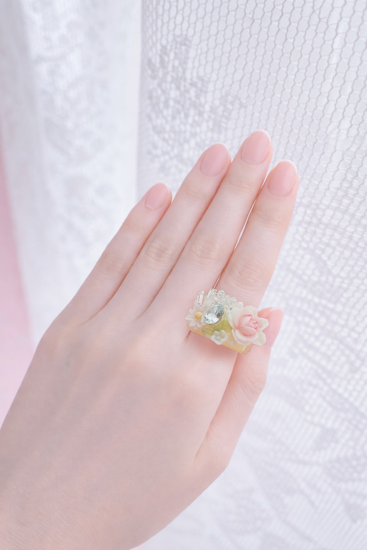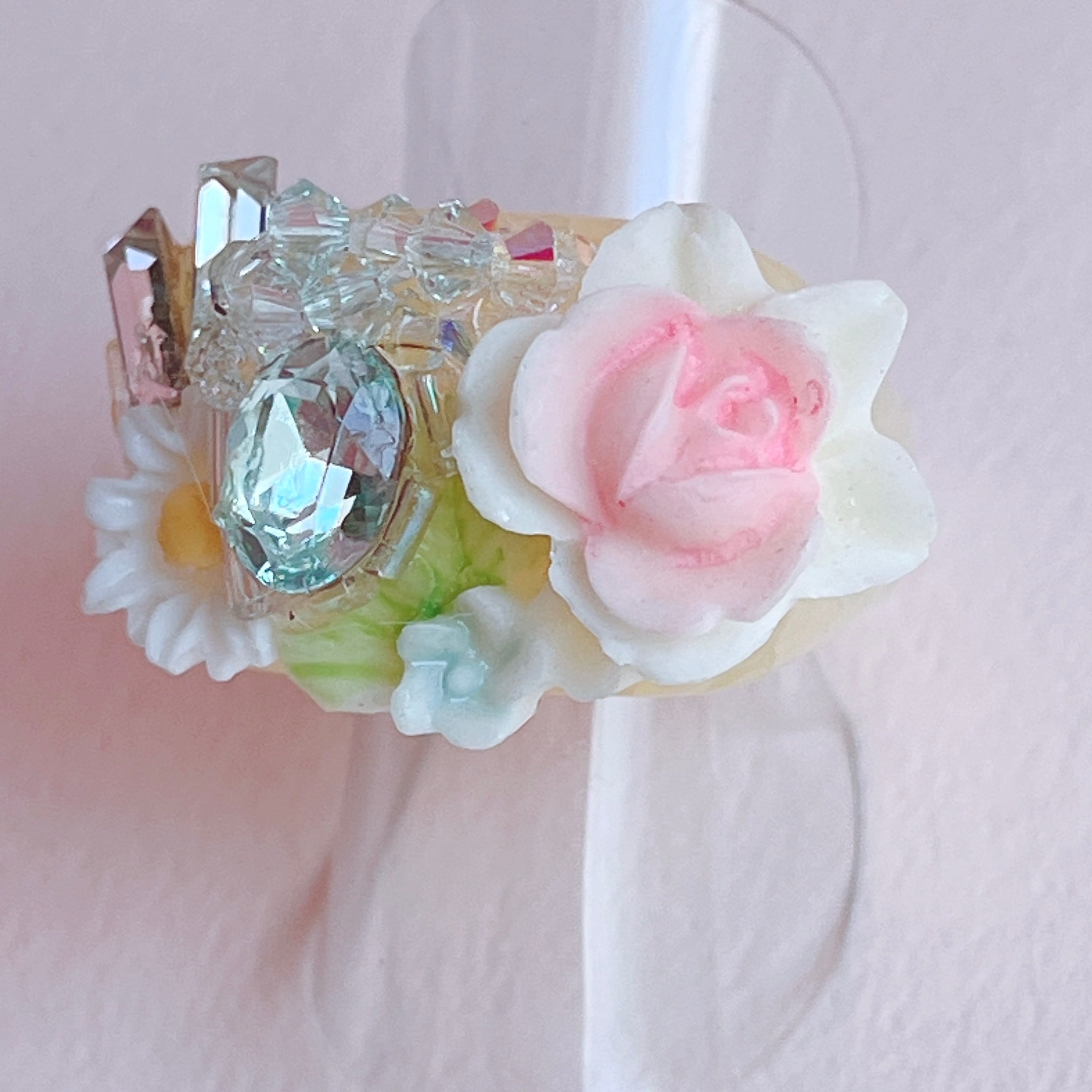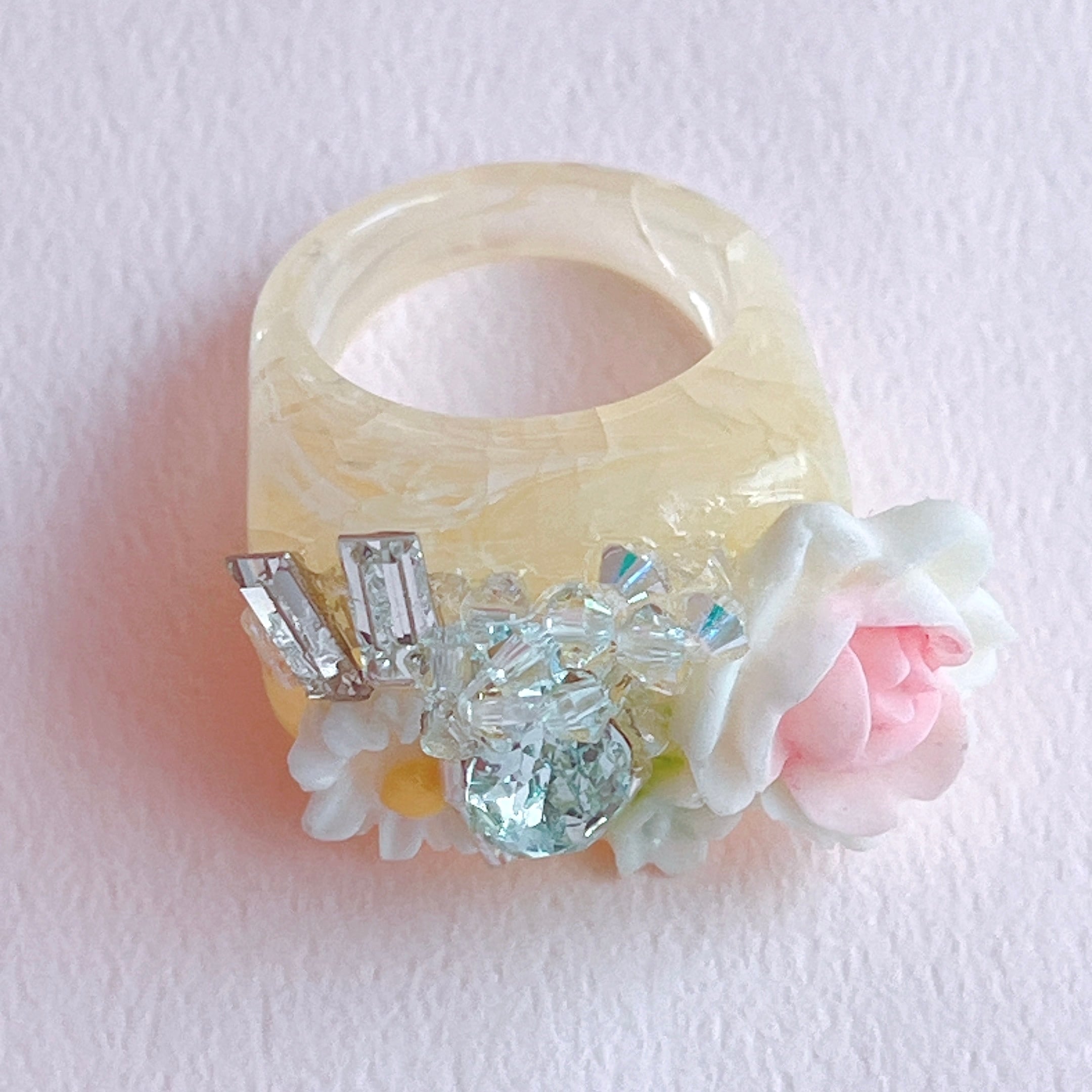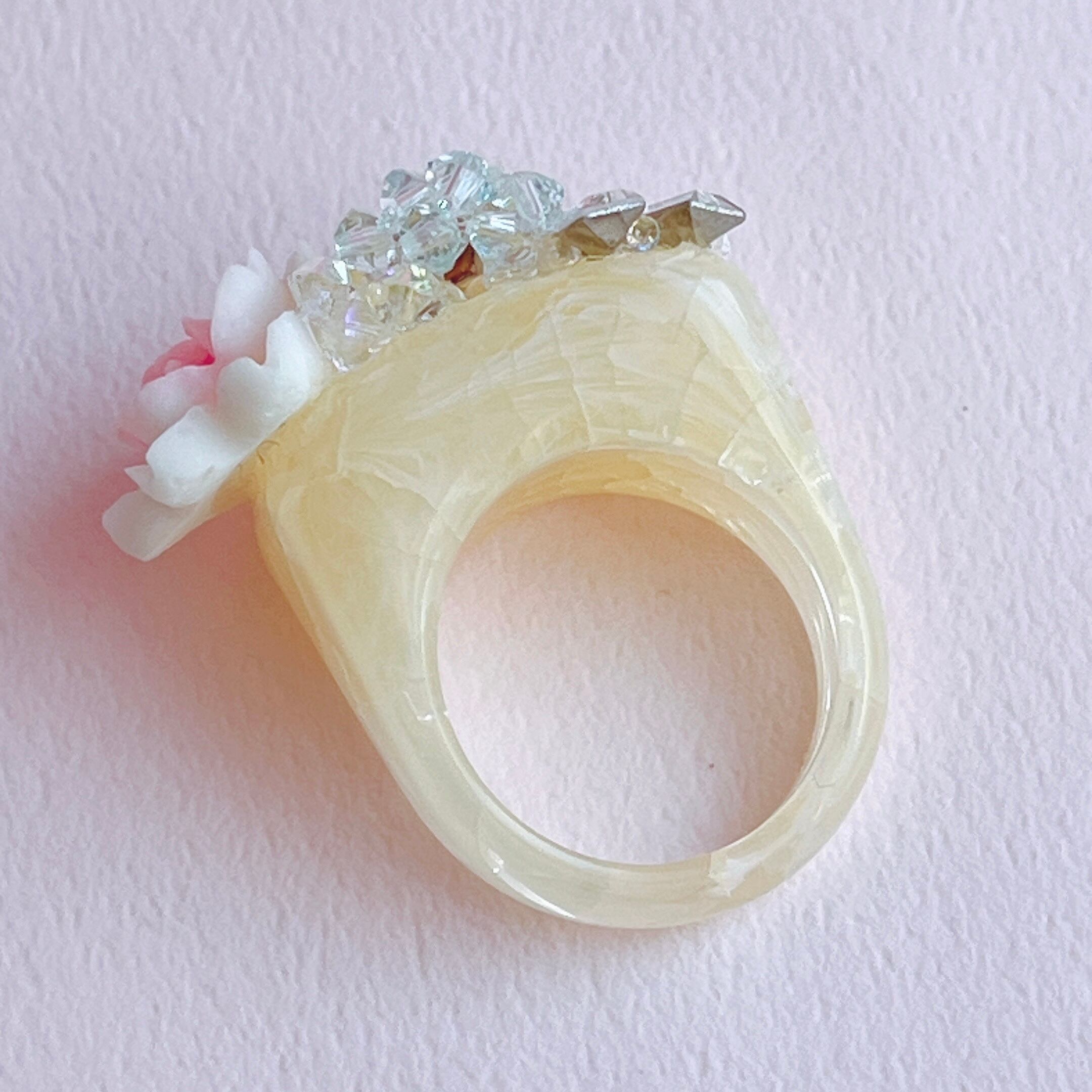 ・素材:樹脂(リング部分)、Vintageカボション、樹脂パーツ、クリスタルビジュー