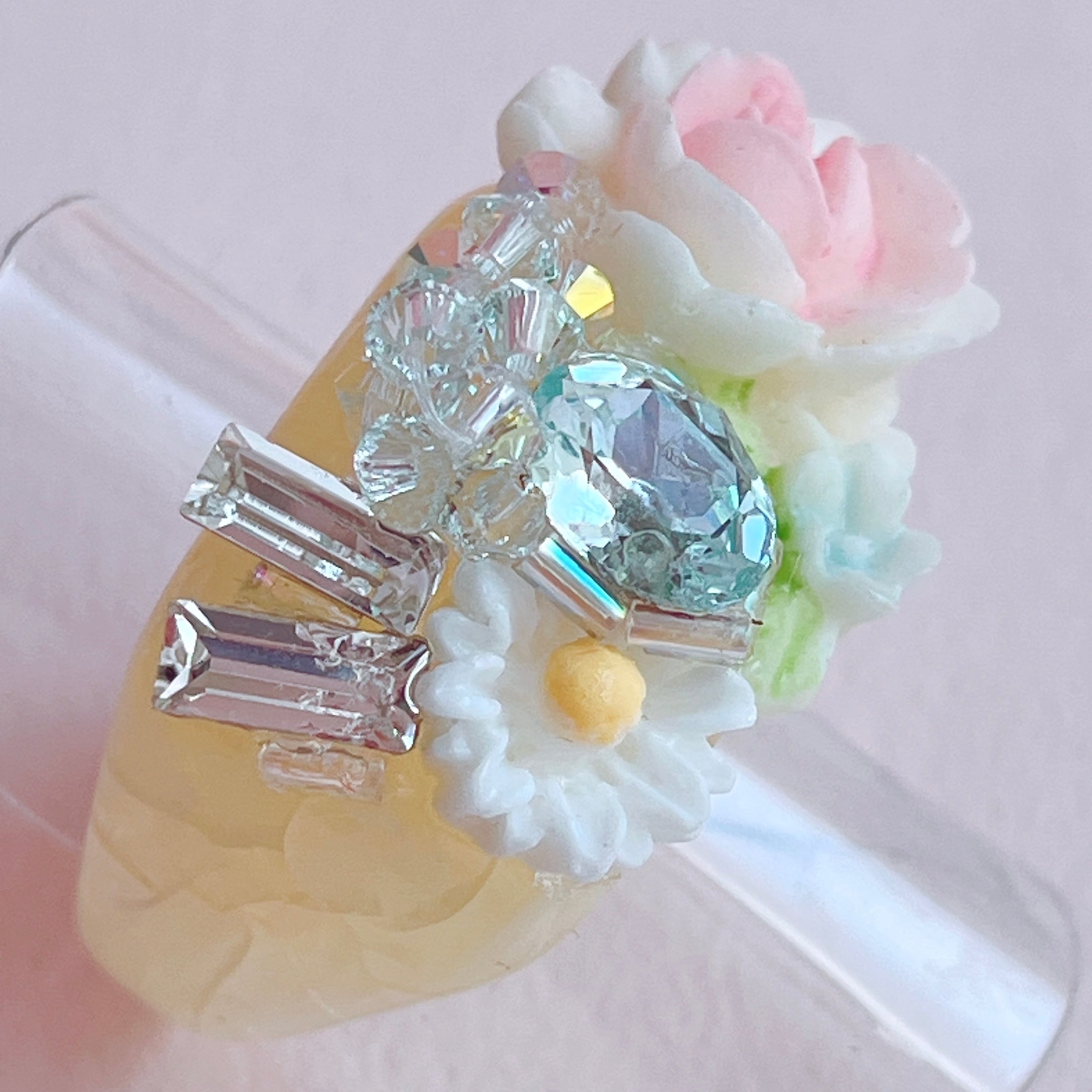 ボリュームがありながら、ミルキーイエローの色味が可愛らしく調和します。