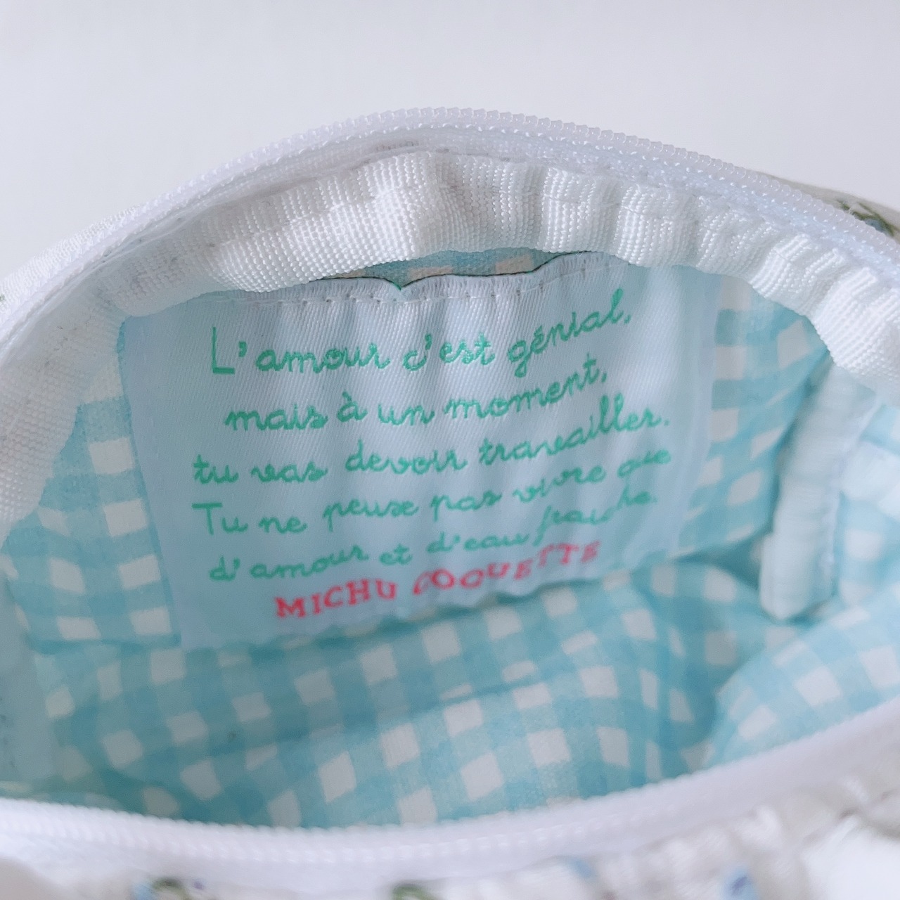 ●刺繍タグに書かれたフランス語にはmichuのひとりごと?が…