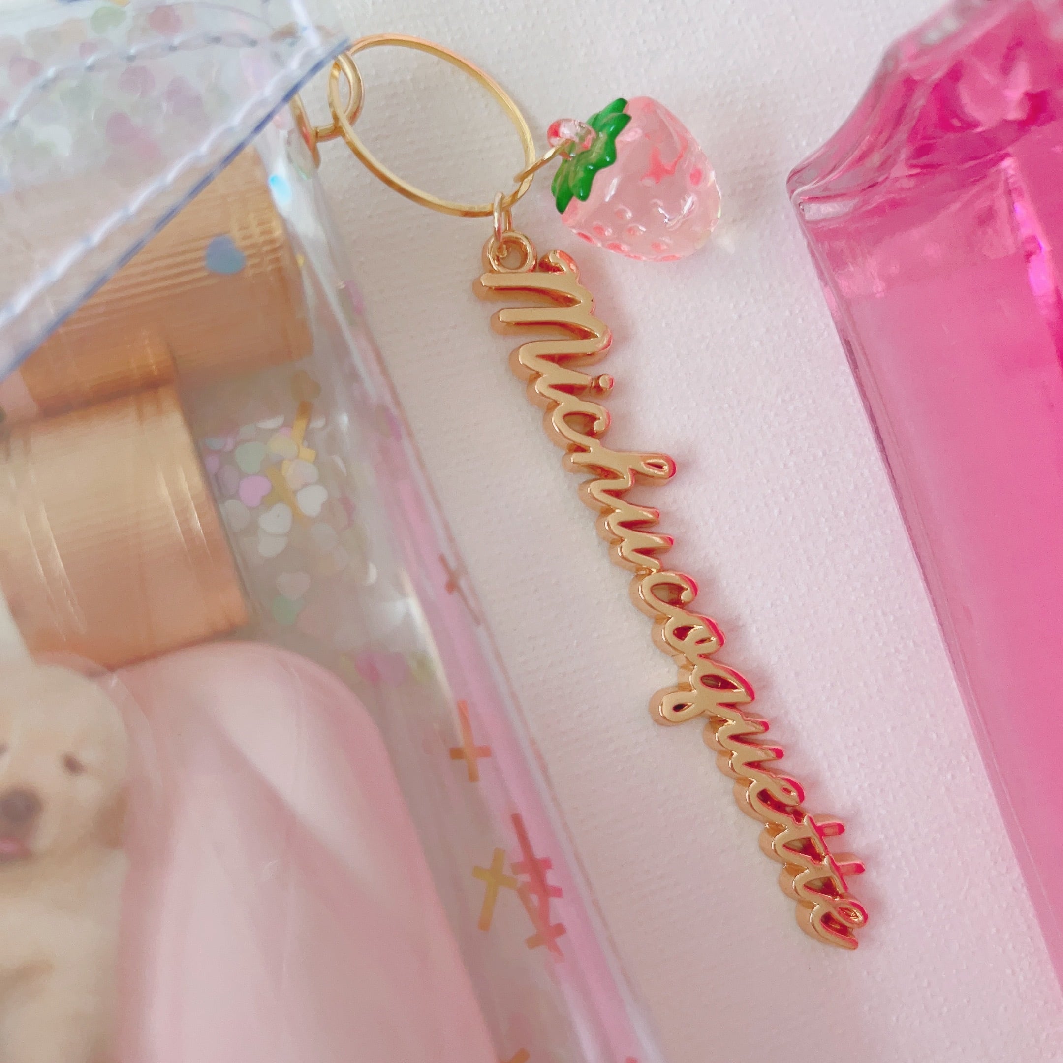 MICHU COQUETTEのロゴバーとピンクのイチゴのチャーム付き。